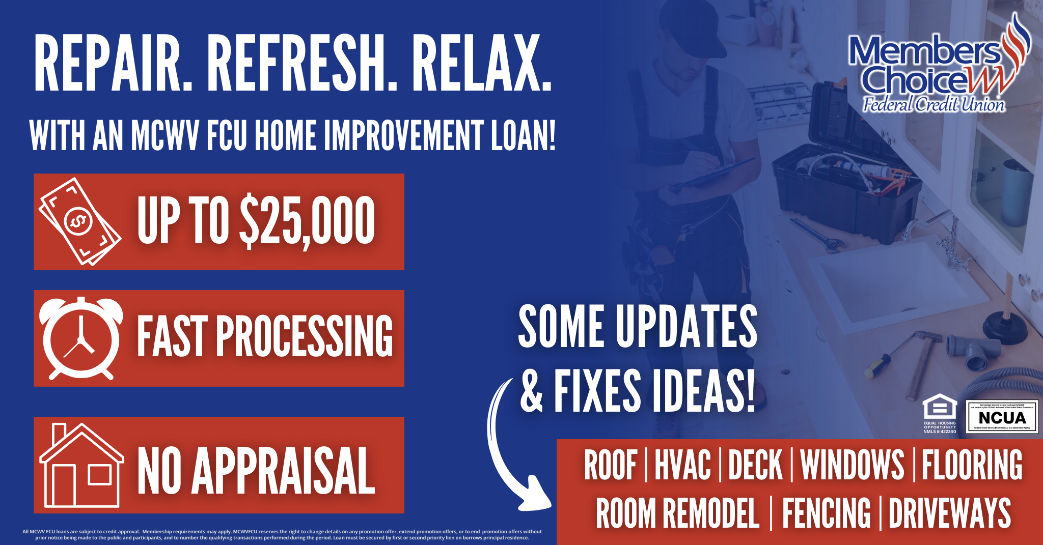 The season for open windows, backyard barbecues, and starting those home projects you’ve been thinking about is back! At MCWV FCU, we make getting started simple with our home improvement loans!